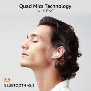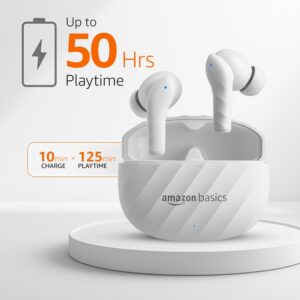 Discover the Amazon Basics TWS in-Ear Earbuds (AB-T10) for immersive sound with dual 10mm drivers. Enjoy up to 50 hours of playtime with the charging case and IPX4 water-resistance for durability. Featuring Bluetooth 5.3 and touch controls, these earbuds also support fast charging, just 10 minutes of charge provides 125 minutes of playback. Ideal for seamless music enjoyment and convenient calls on the go.
