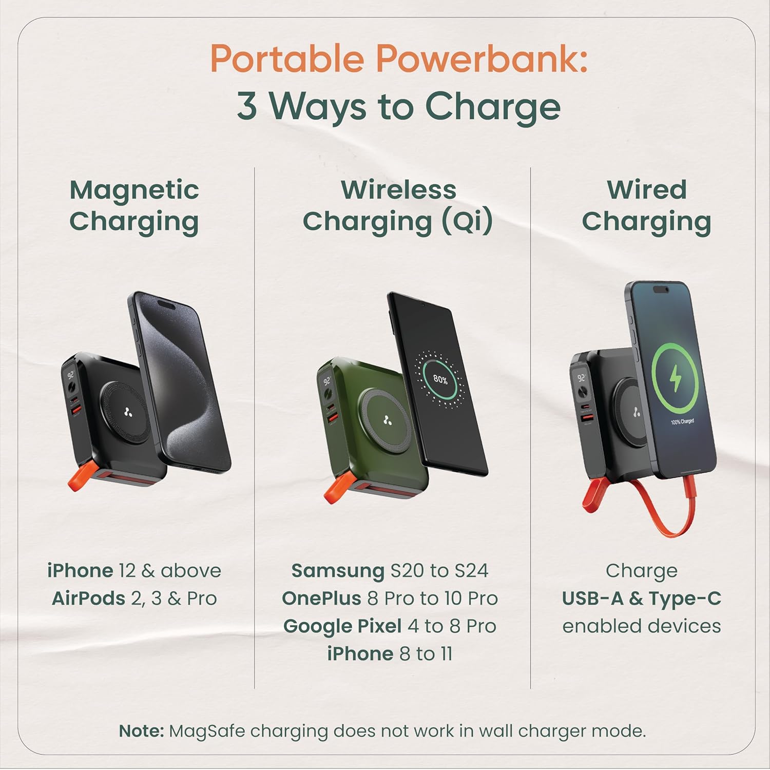 65W Total BoostedSpeedThe AeroSync 65 offers fast and reliable charging with 65W Total BoostedSpeed, featuring Power Delivery and Quick Charge technologies. Keep your devices ready to go with rapid and efficient power. | 15W MagSafe & Wireless ChargingCharge your devices wirelessly with the AeroSync 65’s 15W MagSafe capability. Enjoy the convenience of cable-free charging for a clutter-free experience. | 4-in-1 Charging DeviceThe AeroSync 65 combines a powerbank, MagSafe and wireless charging, a wall charger, and an inbuilt Type-C cable in one device. This all-in-one solution simplifies your charging needs, whether you’re at home or on the go. | 15000mAh Battery CapacityWith a 15000mAh battery capacity, the AeroSync 65 provides ample power to keep your devices running longer. Charge multiple devices multiple times without needing to recharge the powerbank itself frequently. |