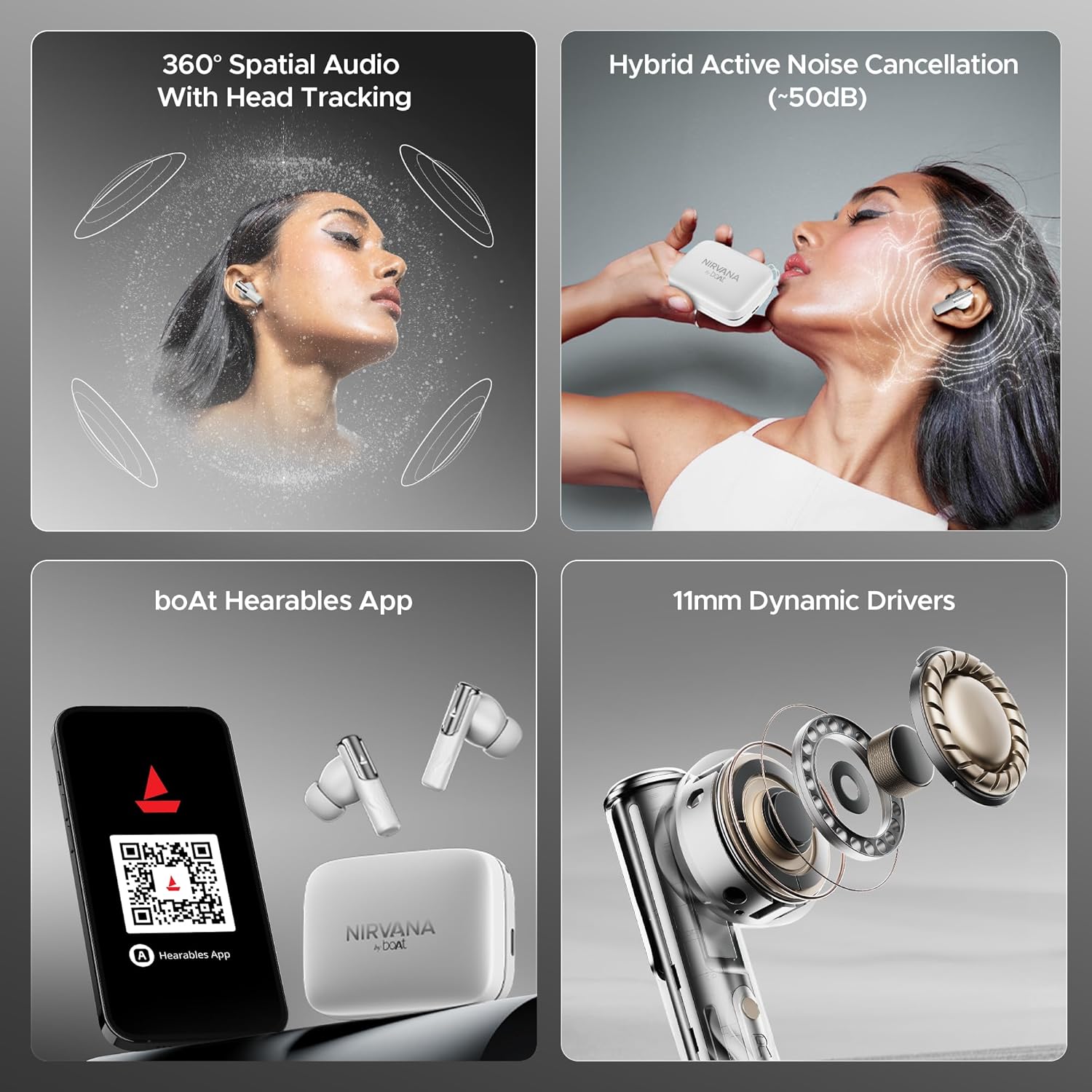 | Special Feature | boAt 360º Spatial Audio with Dynamic Head Tracking, Hearables App Support, 50 dB Hybrid Active Noise Cancellation |