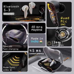 Boult Audio UFO Truly Wireless in Ear Earbuds with 48H Playtime, Built-in App Support,(Smoky Metal)