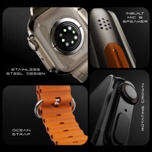 | Special Features | Accelerometer, Activity Tracker, Alarm Clock, Calorie Tracker, Camera, Notifications, Pedometer, Phone Call, Sedentary Reminder, Sleep Monitor, Text message, Time Display, Spo2 (Blood Oxygen Monitoring), Heart Rate Tracking, Bluetooth Calling, IP68 Smartwatch, 2.02″ Display, 320*385 Pixel High Resolution, Built In Mic & Speaker, Voice Assistant, Games, Find Phone, Daily Workout Memory, Distance Tracker, Multisport Tracker, Music Player |
