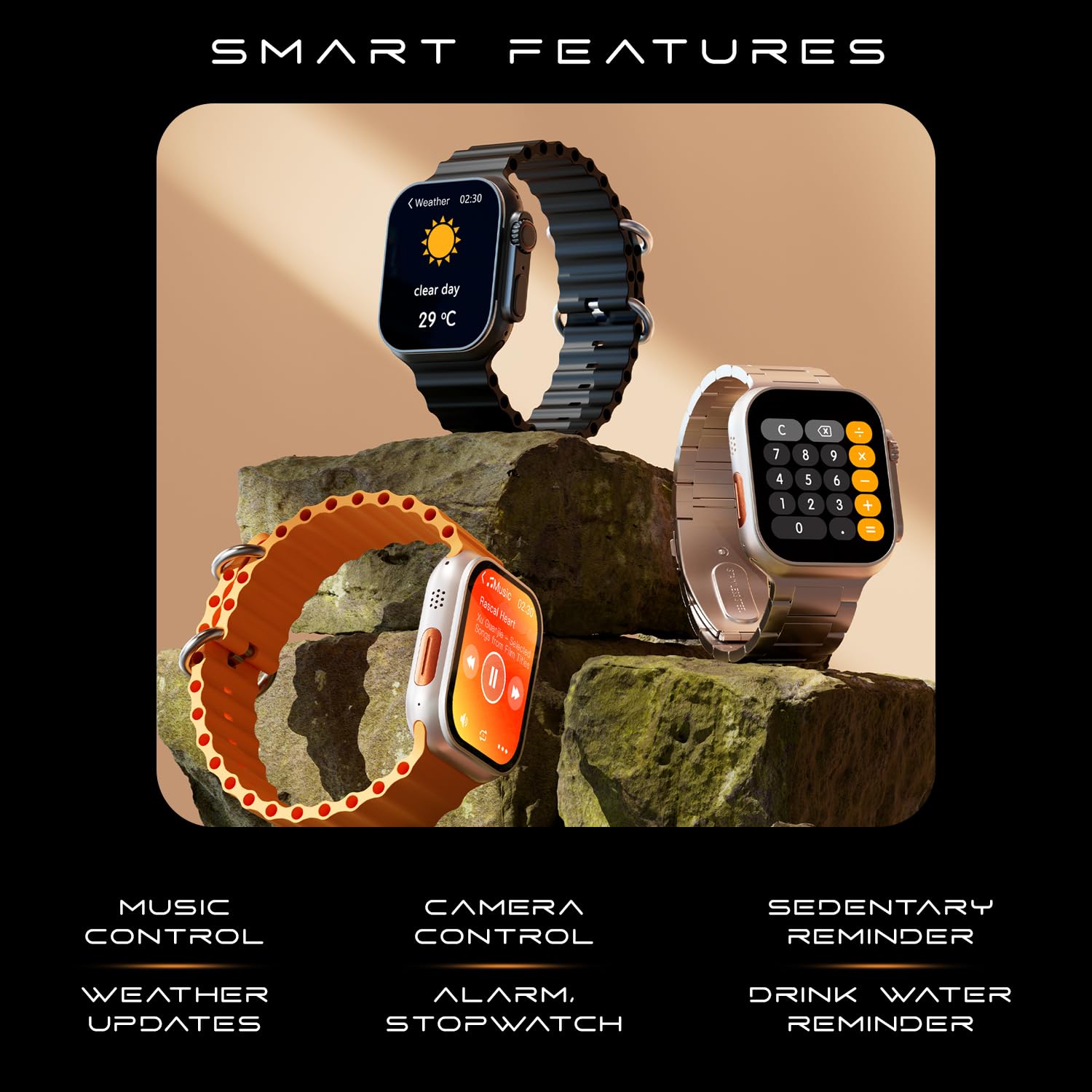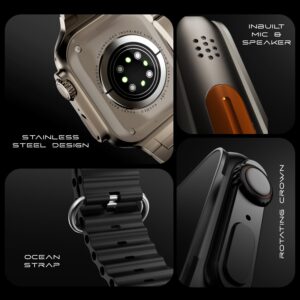 | Special Features | Accelerometer, Activity Tracker, Alarm Clock, Calorie Tracker, Camera, Notifications, Pedometer, Phone Call, Sedentary Reminder, Sleep Monitor, Text message, Time Display, Spo2 (Blood Oxygen Monitoring), Heart Rate Tracking, Bluetooth Calling, IP68 Smartwatch, 2.02″ Display, 320*385 Pixel High Resolution, Built In Mic & Speaker, Voice Assistant, Games, Find Phone, Daily Workout Memory, Distance Tracker, Multisport Tracker, Music Player |