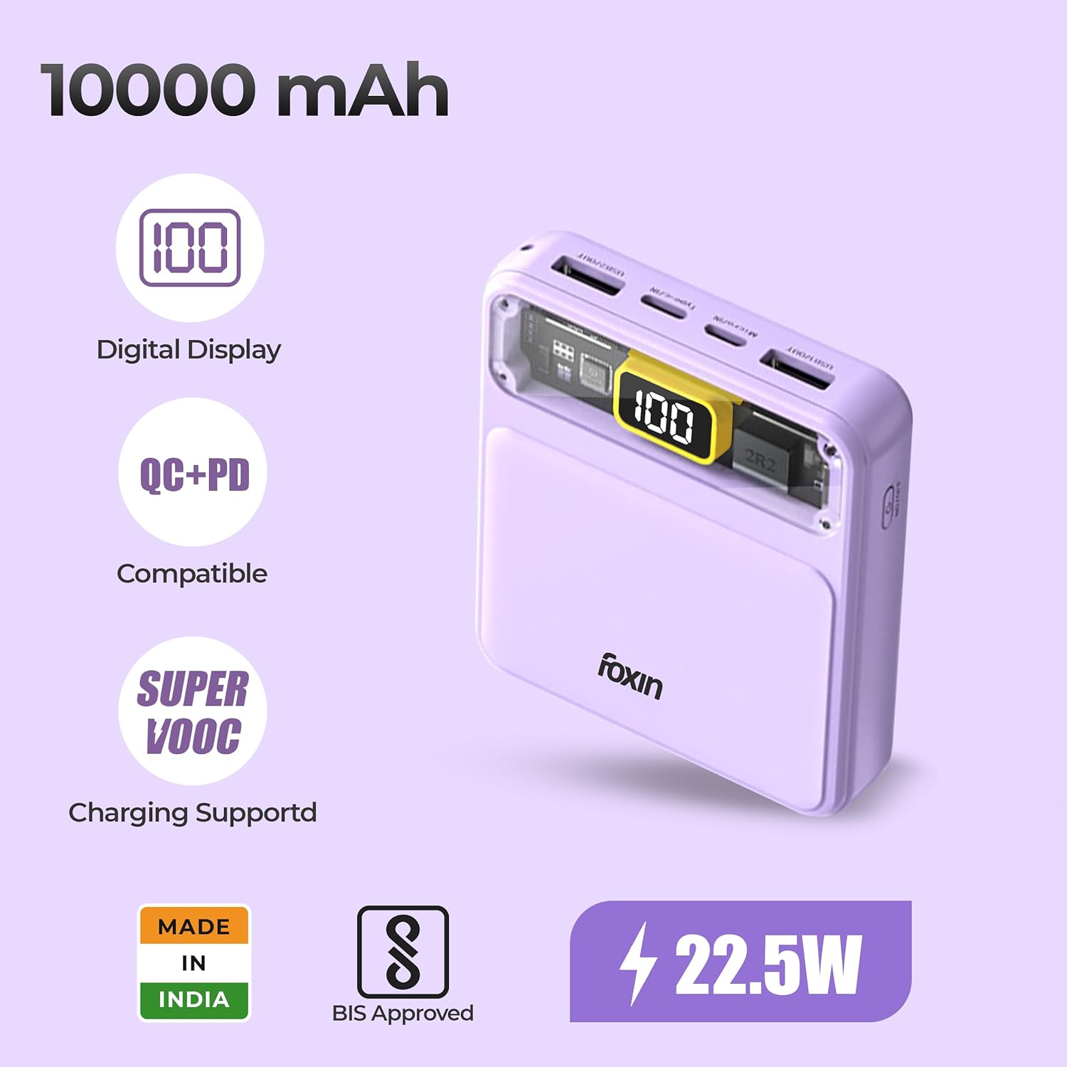 | Special features | Digital LED Display, All-In-One Power Bank, Made in India, Built-In Charging Cables: 8-Pin, Type-C, Micro-USB, USB, Upto 22.5W Rapid/Fast Charging |