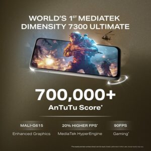 Powered by the World’s 1st MediaTek Dimensity 7300 ULTIMATE Processor, this phone delivers ultra-fast performance, smooth gaming, and seamless multitasking. The dedicated NPU 655 boosts AI performance, making photos sharper, apps smarter, and your phone faster for a smoother experience!
