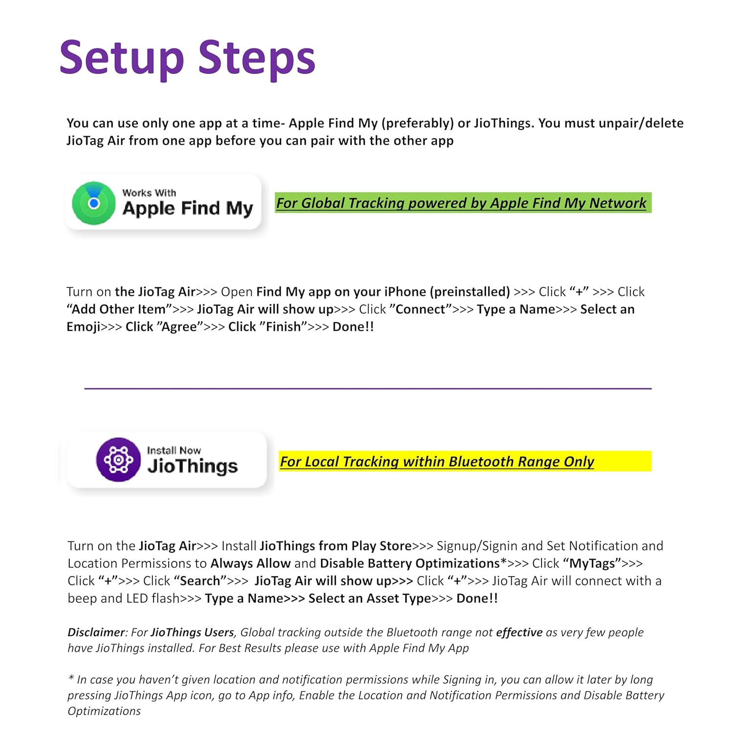 | Whats in the box | JioTag Air, Extra Battery, Double Sided Tape, Warranty Details and User Manual |