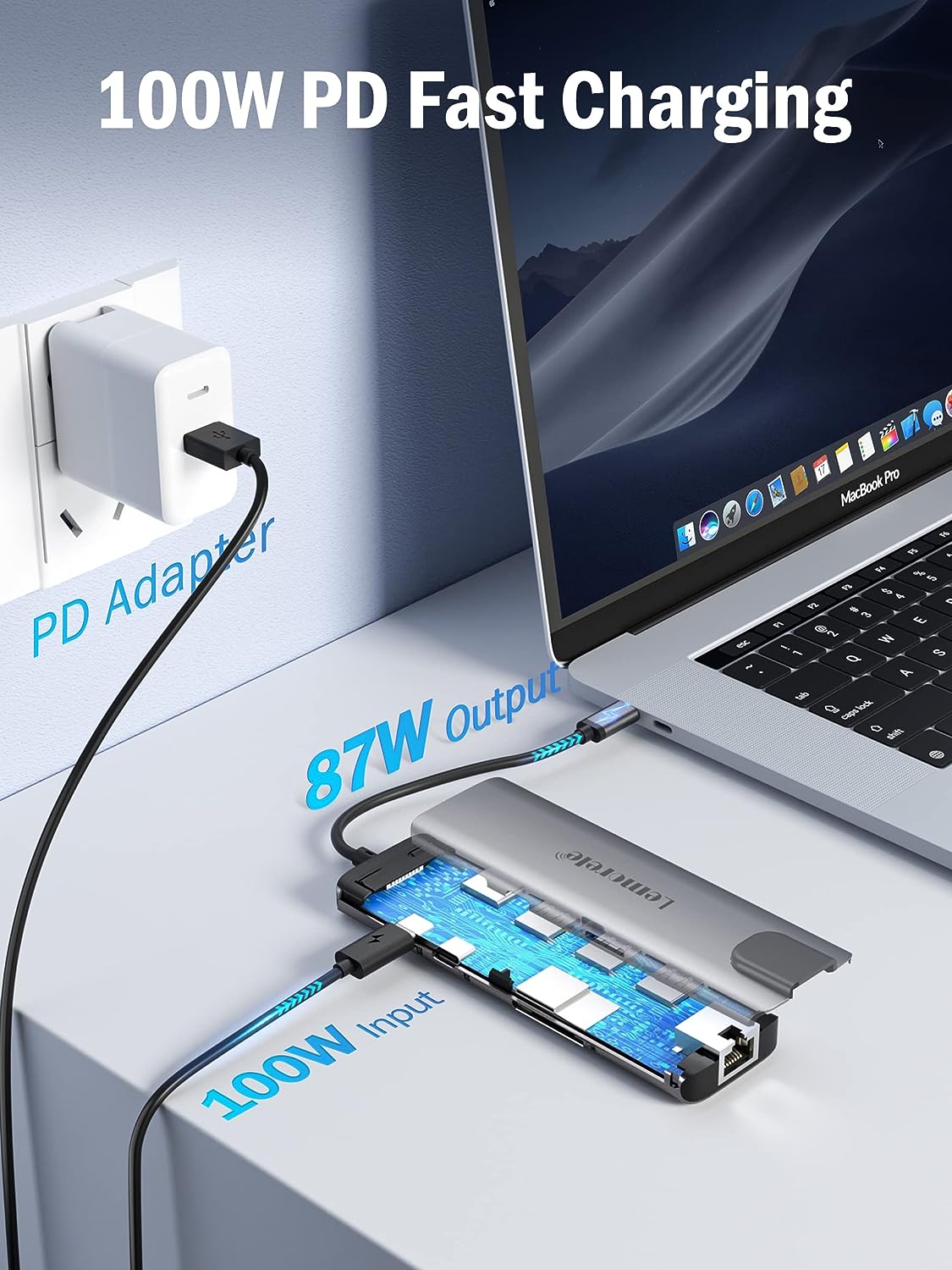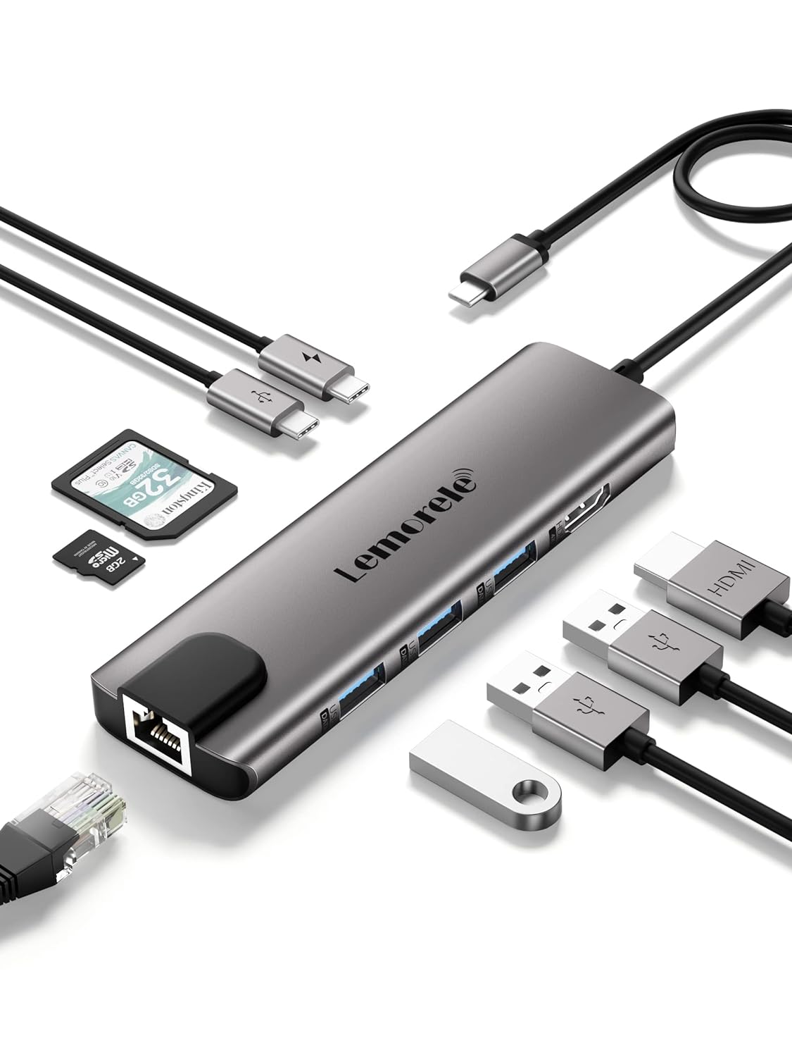 Lemorele Aviation Aluminum Alloy 9-in-1 for MacBook Pro/Air M1 Adapter Multiport Dock Expand your laptop/smartphone ports with 3*USB A+ 4K HDMI + 100W PD +RJ45 Gigabit Ethernet+USB C data transfer port and SD/TF card reader.