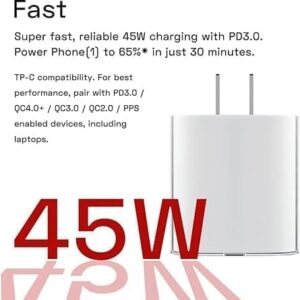 Nothing Phone (2) Charger Power (45W) Super Fast Charging With Pd 3.0 Usb-C Compatible With Nothing Phone (1) Nothing Phone 2 (45W Power Adapter Usb C Wall Charger Super Fast Charging), White