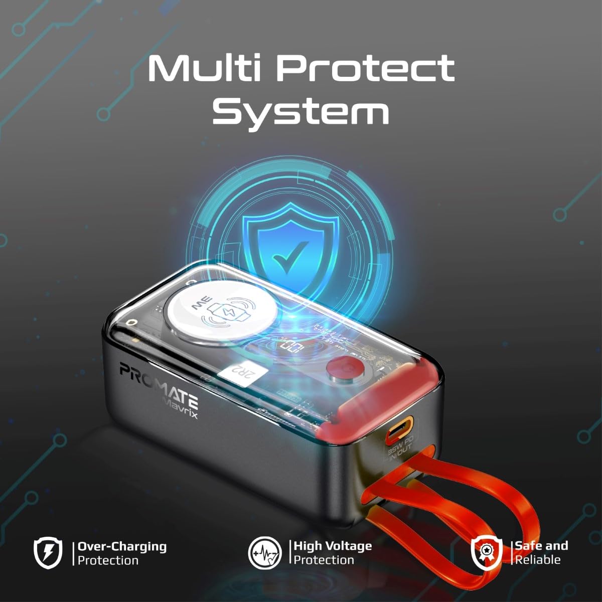 Equipped with a 10000mAh lithium-ion battery, Mavrix ensures quick and efficient charging for your devices, making it ideal for travel and daily use.