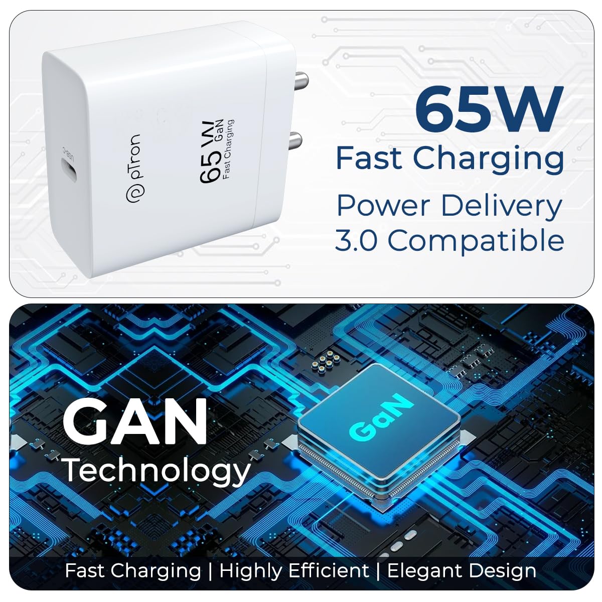 Made in India Type-C (PD) 65W Fast Charger: pTron Volta FC23 power adapter offers fast and efficient charging. Charge your smart devices faster than ever with the original cable (cable not included, only 1 Charger). Safe & Reliable single USB-C charger for all smart devices packed with a brilliant chip that effectively protects your devices from overheating and overcharging. The GaN chip technology enables this device to be way more efficient as compared to standard chargers with Intelligent Power and Heat Management; also making this about 40% smaller than standard chargers. Durable Design: Robust textured casing and high-quality internal components ensure perfect performance regardless of scrapes, bumps, or drops. Wide working voltage, AC 100-240V 50/60Hz input available in most countries. Output: 5V-3A, 9V-3A, 12V-3A, 15V-3A, 20V-3.25A. Provide fast charging speed for your smartphone and tablet and save more time. This power adapter is easy to use at home, in the office, or in the hotel. Simply connect with your phone USB cable and plug it into an electrical socket. Other Specifications: Power Supply AC Source, Max. Output Current in Amp 3.25, Output Interface USB-C (PD), Charger Material: ABS, No. of USB Ports: 1. This durable fast-charging power adapter comes with 6 months warranty from the date of purchase by the end consumer, customer care contact details support@ptron.in/040 – 67138888.