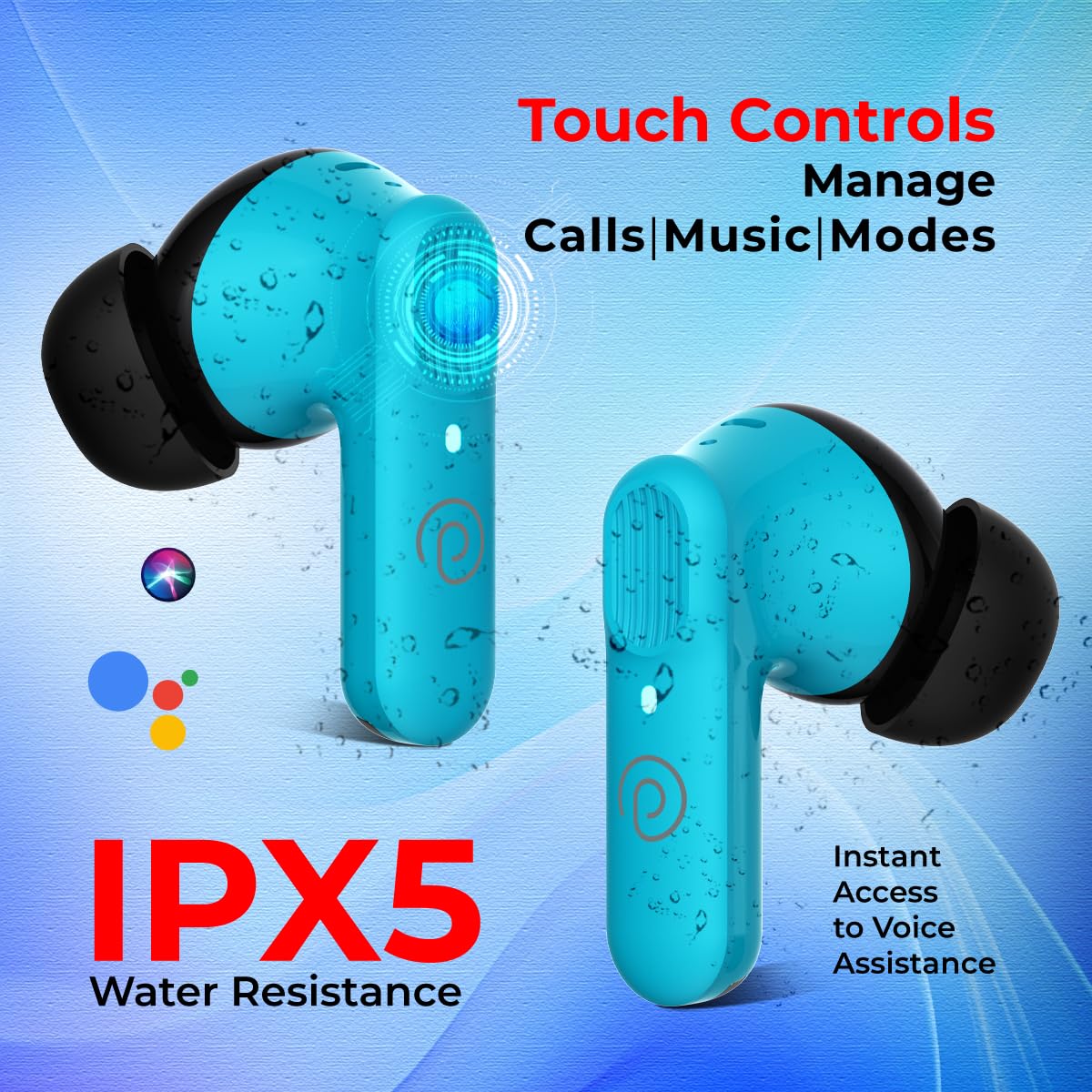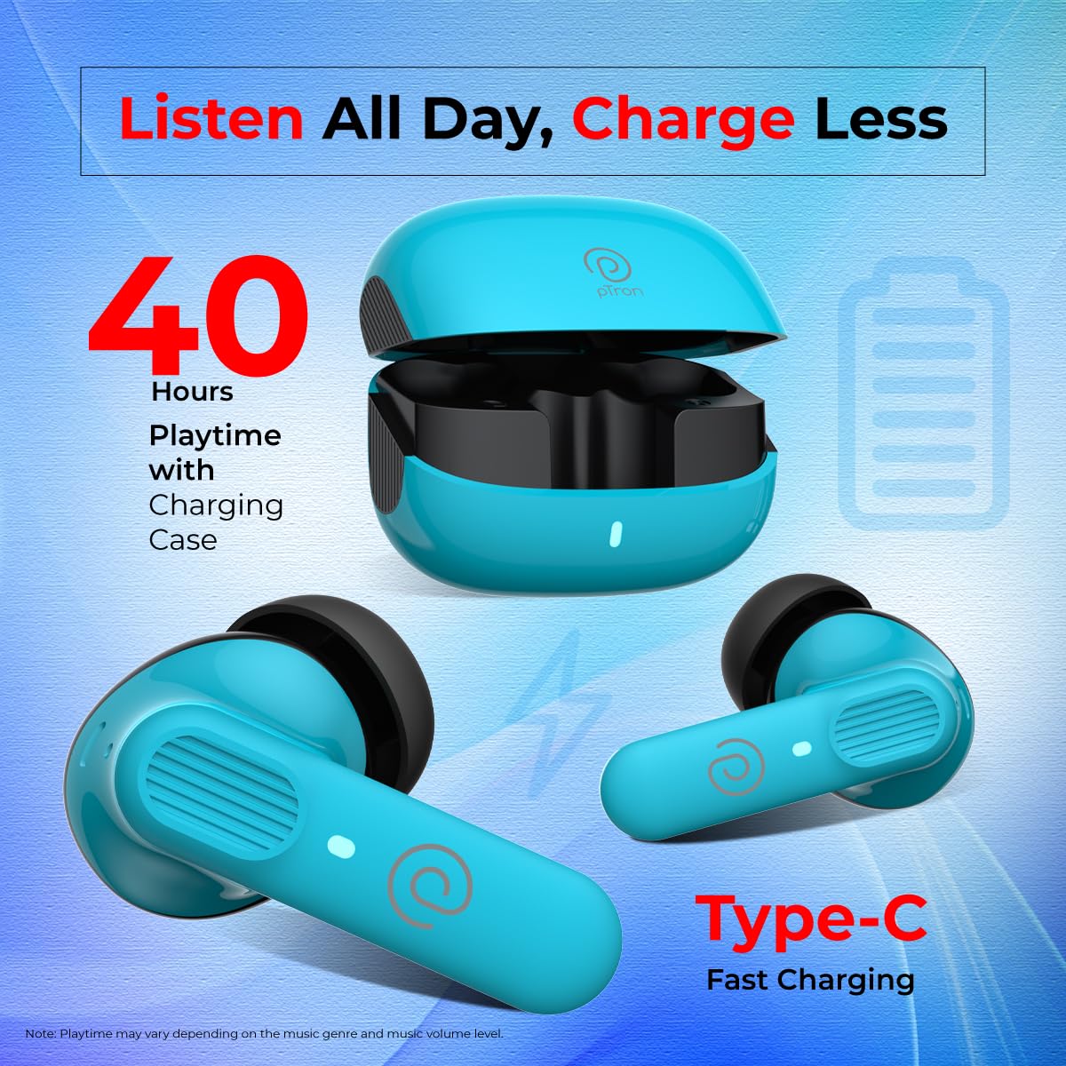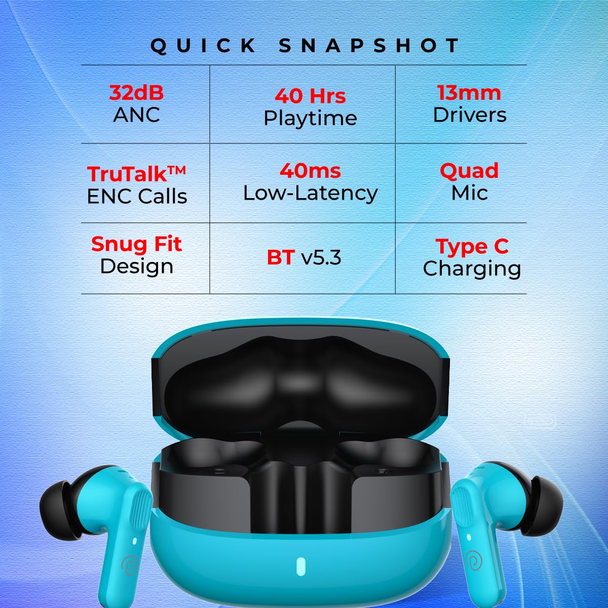 pTron Newly Launched Zenbuds 1 V2 32dB ANC TWS Earbuds, Transparency Mode, , 40H Playtime, Blue