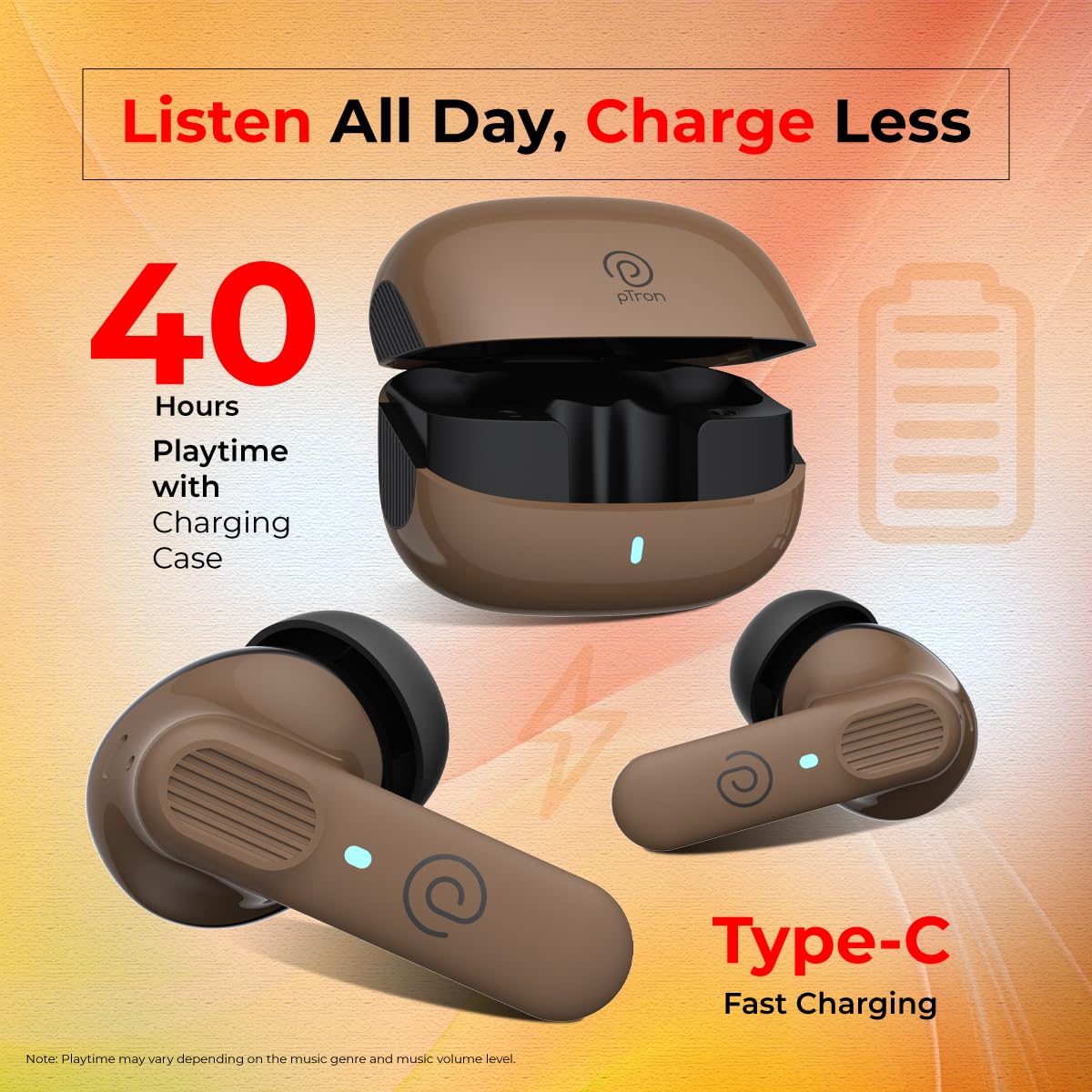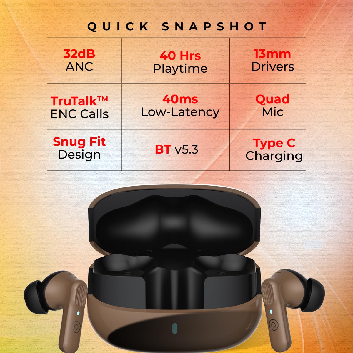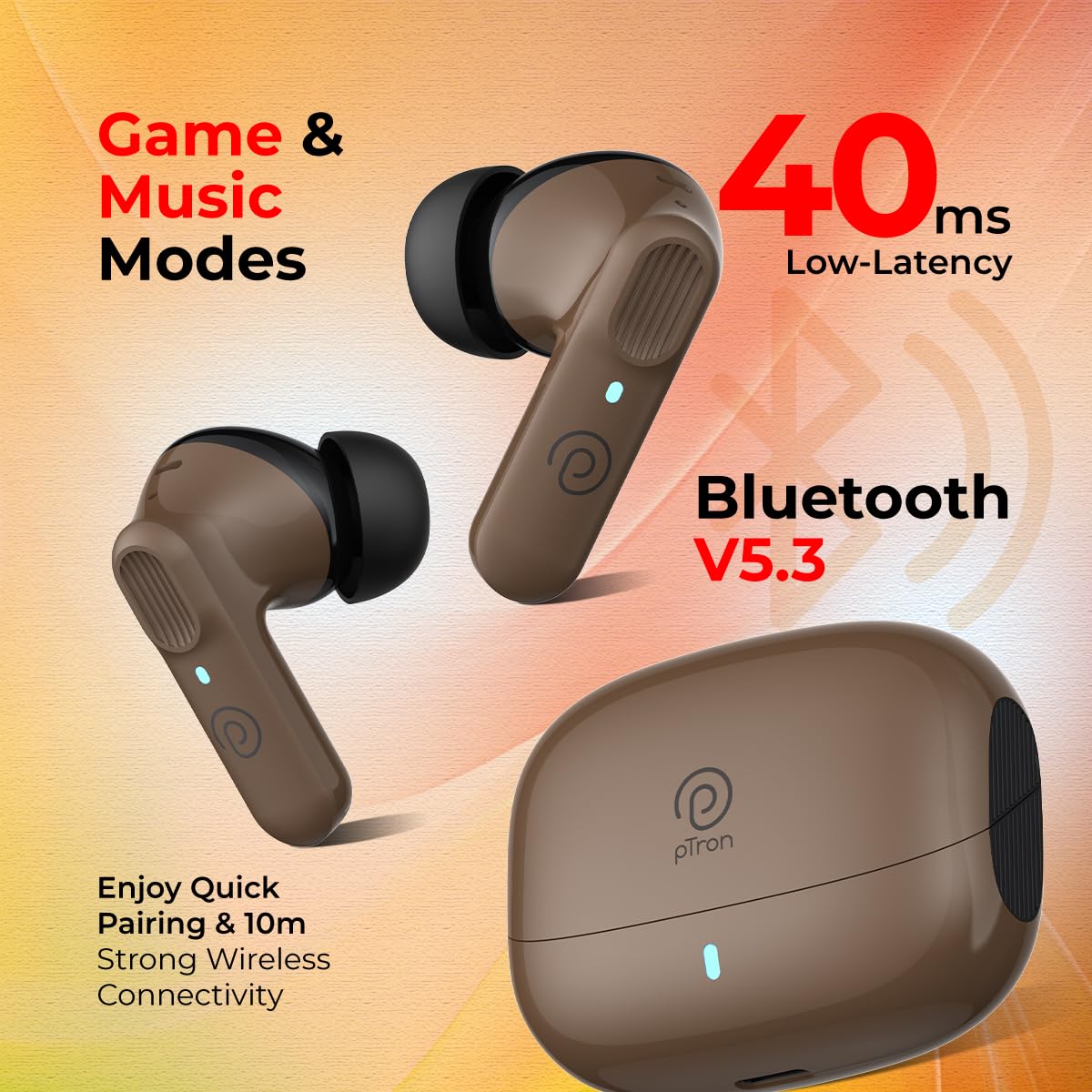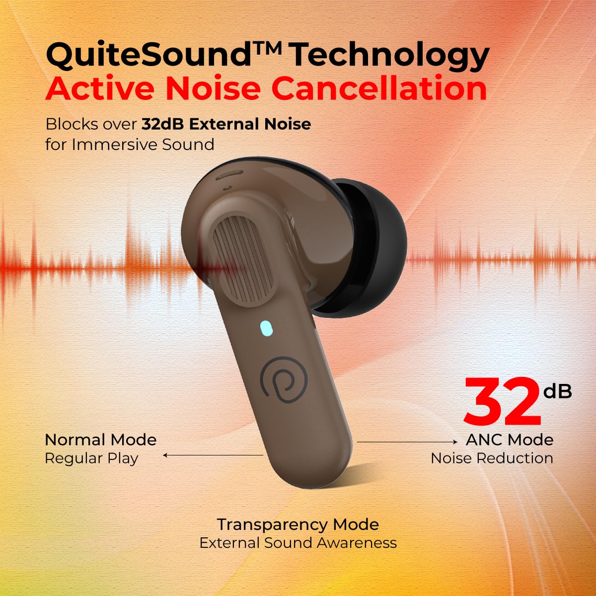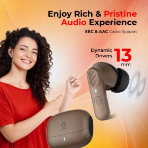 pTron Newly Launched Zenbuds 1 V2 32dB ANC TWS Earbuds, Transparency Mode, (Brown)