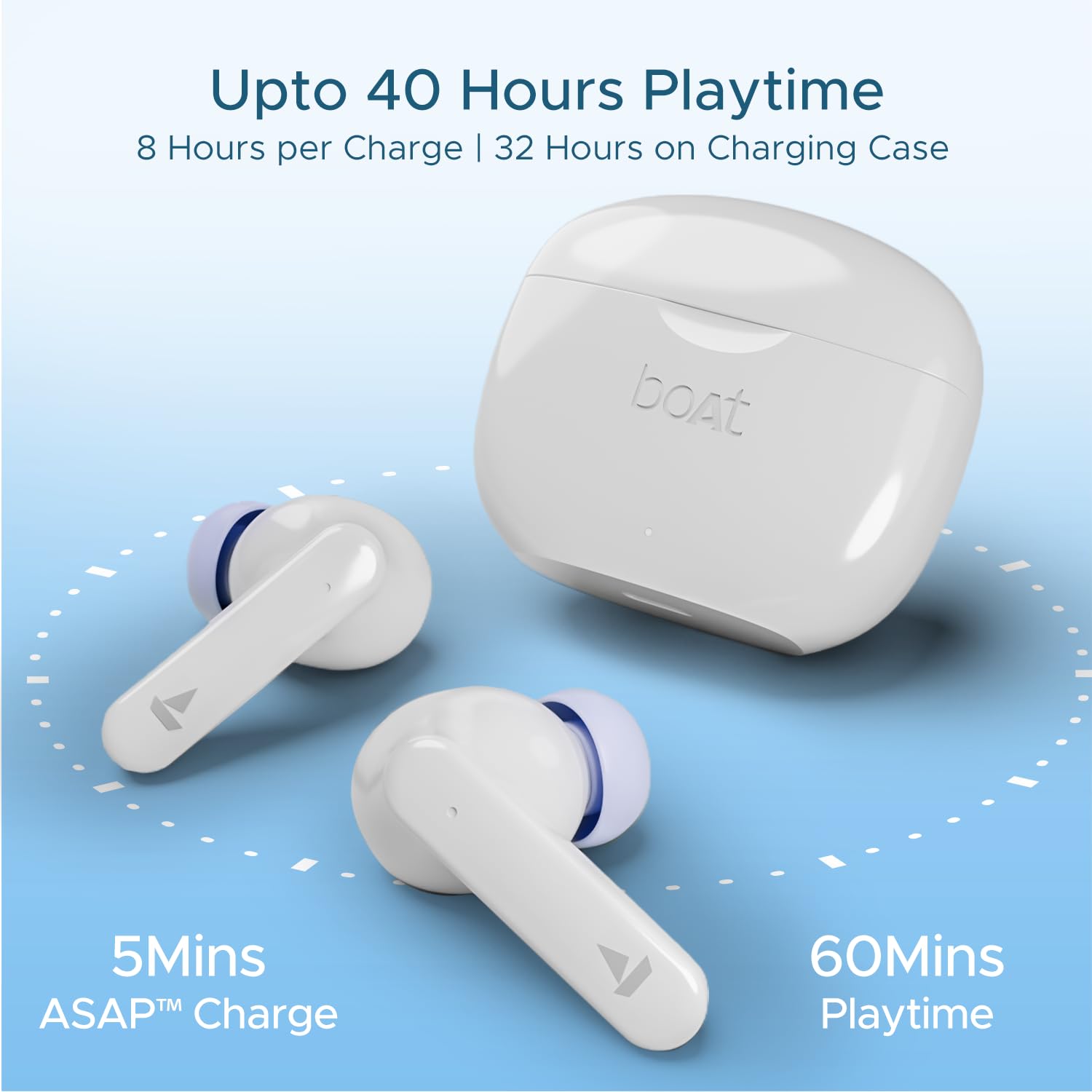 Charge your Airdopes for merely 5 minutes and game or stream for an unbeatable 60 minutes. Let battery woes be bygone!