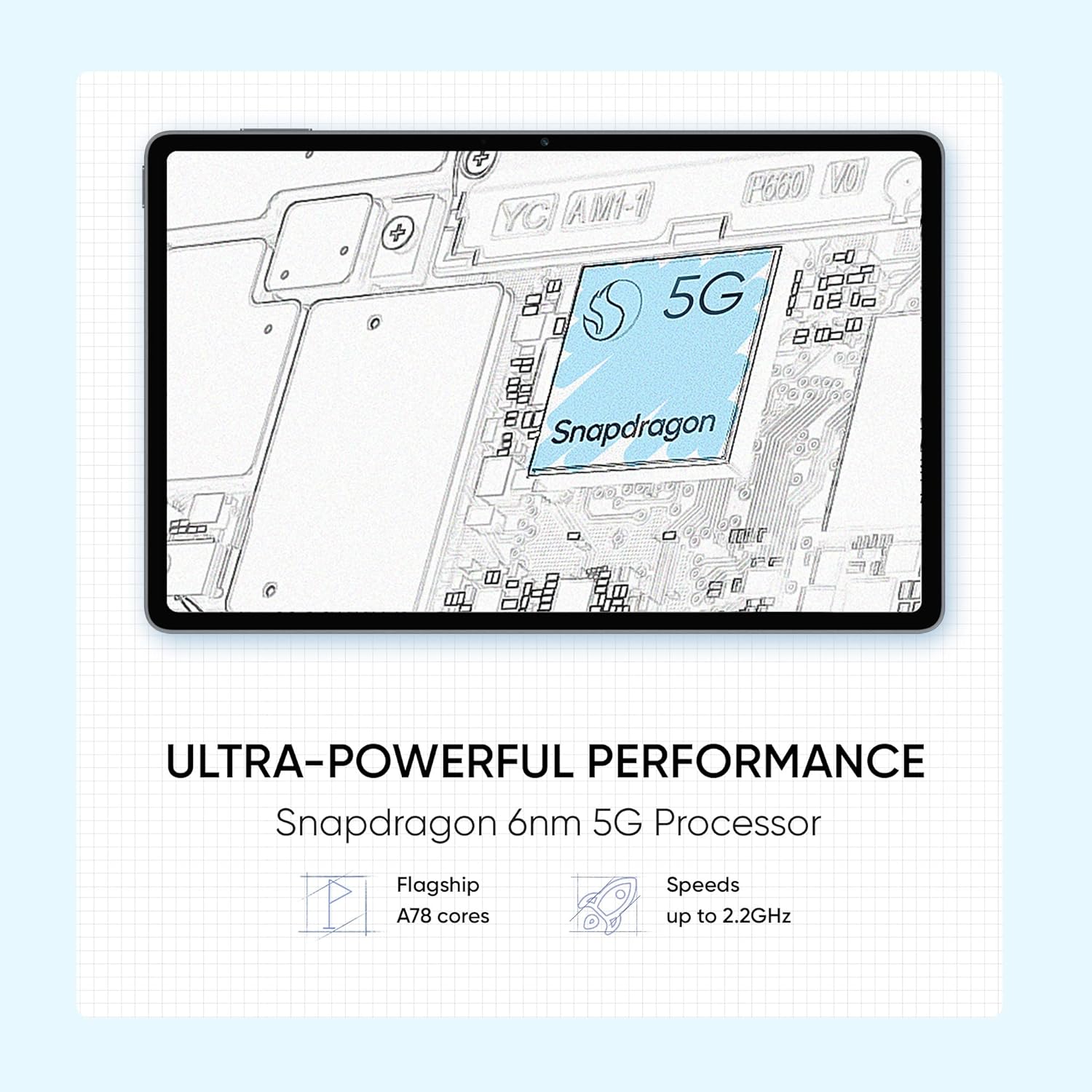 Blistering 5G NetworkUsing a 5G network connectivity option on the realme Pad X Tablet, you can download your favourite movies or music at a lightning-fast speed for a seamless experience. | Enthralling Snapdragon ProcessorPowered by an efficient Snapdragon 6 nm 5G processor and clock speed of up to 2.2 GHzthis tablet lets you take pleasure in smooth multitasking and unmatched gaming performance. Moreover, the 6 nm process facilitates enhanced efficiency and extended battery life, thus allowing you to stay engaged in entertainment throughout the day. | Stunning WUXGA+ Full View DisplayFeaturing a massive 27.81 cm (10.95) WUXGA+ Full View display, this tablet renders a captivating viewing experience while streaming videos or playing games. Also, it comes with Ultra Vision Engine for video colour enhancement and eye protection coating to keep your eyes protected from getting damaged even if you indulge in it for a long time. |