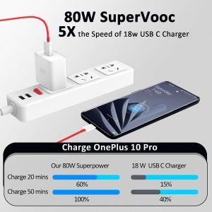 Warp Charge 65, Warp Charge 30, OnePlus Dash Fast Charge, and standard charging speeds for other smartphones are all supported by the OnePlus Warp Charge 80W Power Adapter. The device to which the charger is connected determines the power output. OnePlus Nord CE 2/ 10 Pro/ 9RT/ Nord 2/ 9 Pro/ 9/ 9R/ 8T/ 8T+; WARP 80W CHARGE 30W WARP Charger Compatible with: OnePlus 7 Pro, 7T, 7T Pro, Nord, N10 For all other OnePlus devices, fast charge