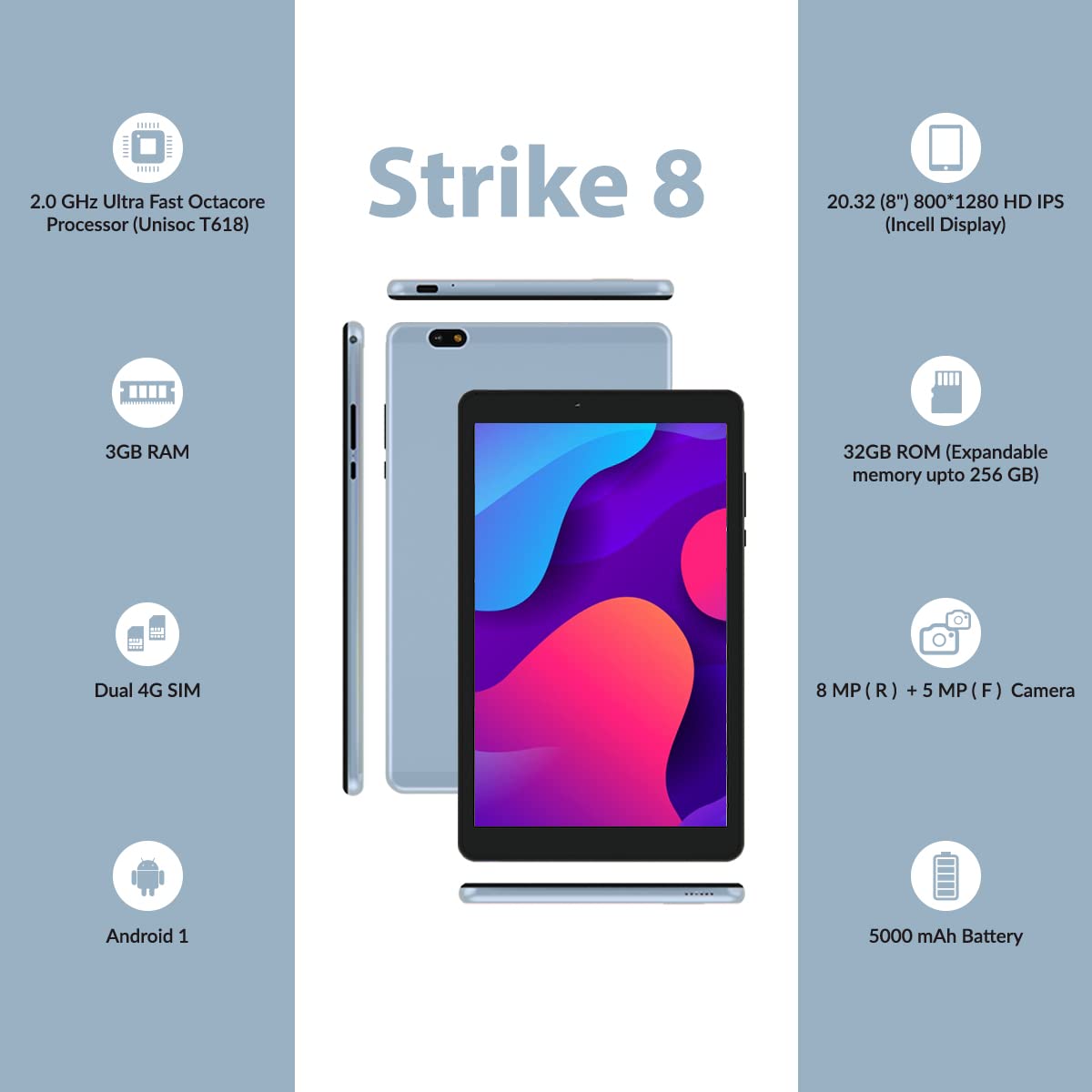 Swipe Strike 8 Tablet (20 cm (8-inch), 3GB, 32GB, Wi-Fi + LTE, Voice Calling) (Glacier Blue)