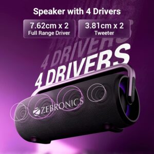 ZEBRONICS AXON 100 Portable Party Bluetooth Speaker, 90W RMS, Quad Drivers + Dual Passive Radiators, RGB, Deep Bass